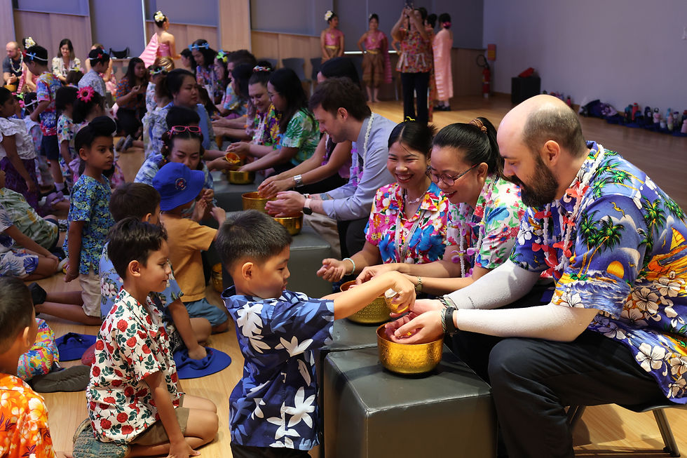 A key cultural component of the event was the Rod Nam Dam Hua ceremony. During this activity, students respectfully poured scented water over the hands of teachers and school leaders. This traditional practice symbolises gratitude, respect, and the receiving of blessings for the year ahead.